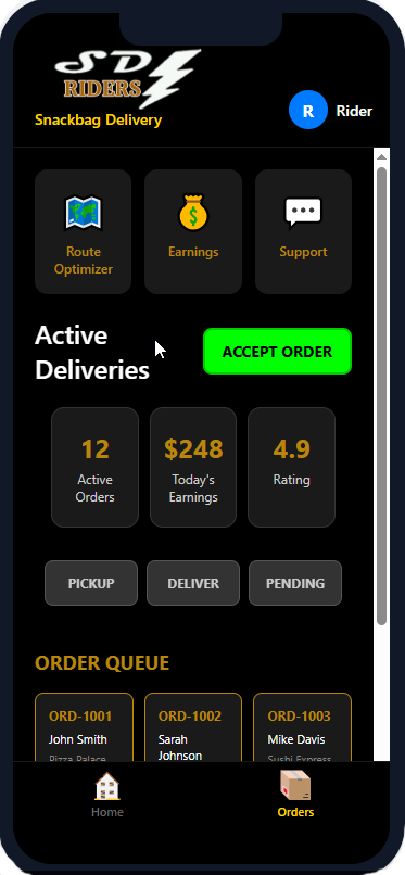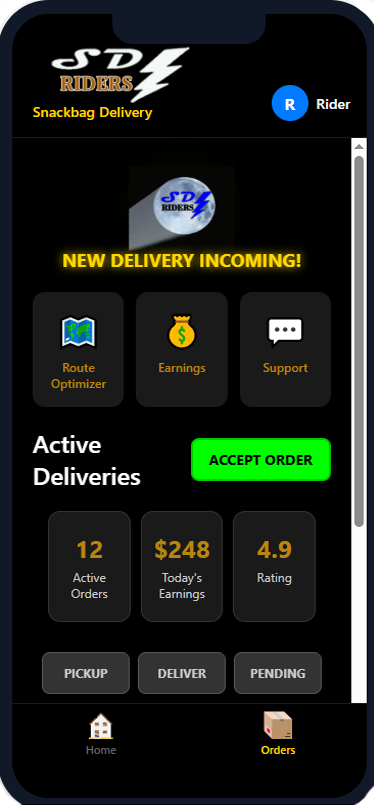 There are 2 ways that Snackbag Delivery Local Riders fulfill delivery orders